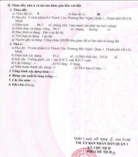 Thông tin nhà mặt tiền Lê Thánh Tôn, Quận 1 siêu phẩm cần bán
