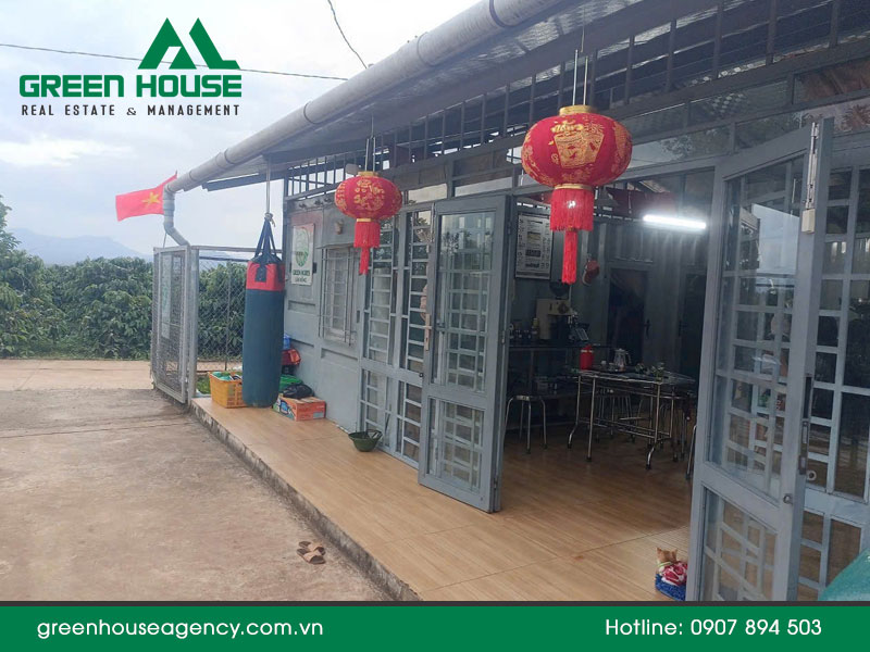 Ngoài vườn cây, trên đất còn có các công trình kiên cố phục vụ đa mục đích. Một căn nhà ở rộng khoảng 100m2 đủ tiện nghi cho gia đình sinh sống hoặc làm nơi nghỉ ngơi cho quản lý trang trại.