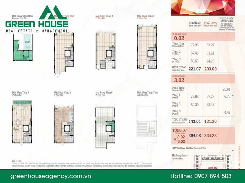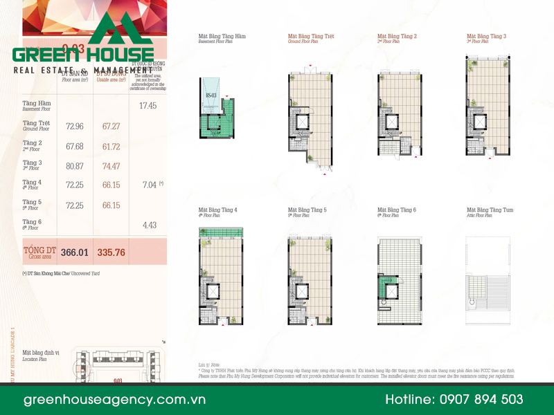 | Kết cấu mỗi căn | 1 Hầm + 5 Tầng nổi + Tum |